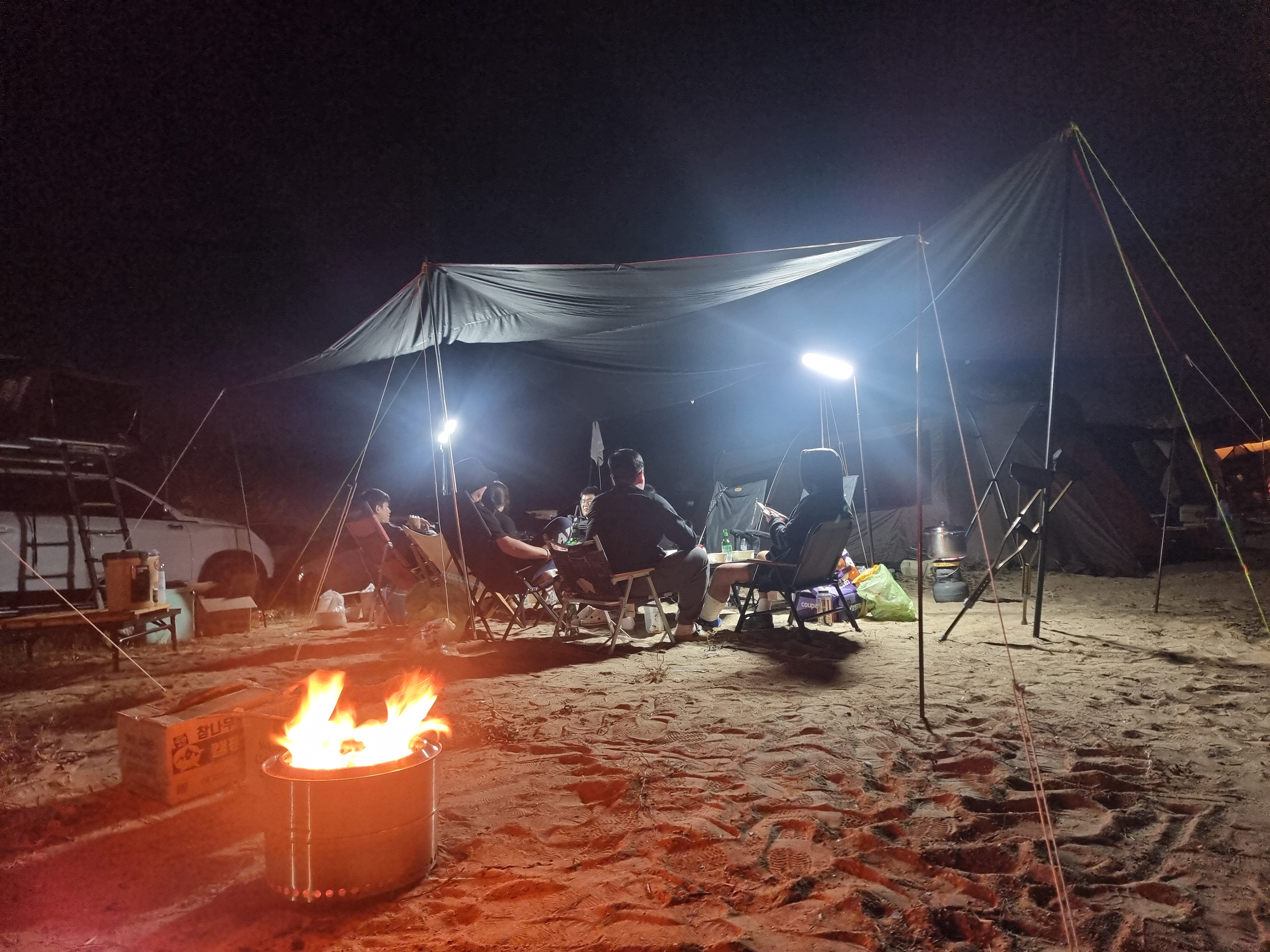분위기도 아주 좋고 이런 게 캠핑의 맛이구나를 느끼면서 다들 술을 마시자만 저는 맨 정신으로 아주 긴긴밤을